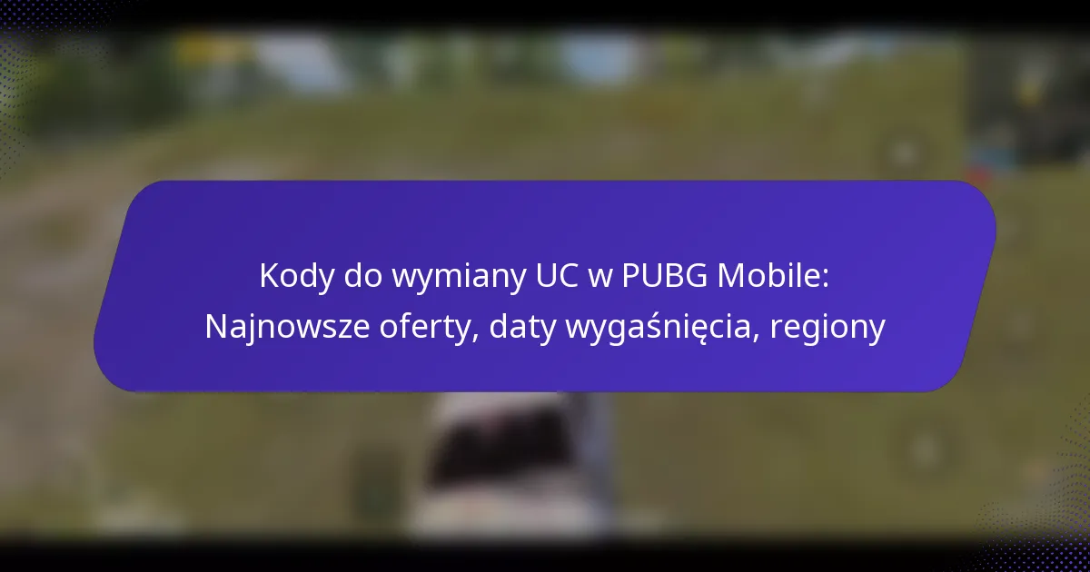 Kody do wymiany PUBG Mobile UC to alfanumeryczne kody, które dają graczom dostęp do Unknown Cash (UC), waluty w grze używanej do zakupu przedmiotów i ulepszeń. Aby maksymalizować nagrody z tych kodów, gracze powinni zapoznać się z procesem wymiany i stosować najlepsze praktyki. Kluczowe jest pozyskiwanie kodów z wiarygodnych źródeł, aby uniknąć oszustw i zapewnić sobie bezpieczne doświadczenie w grze.