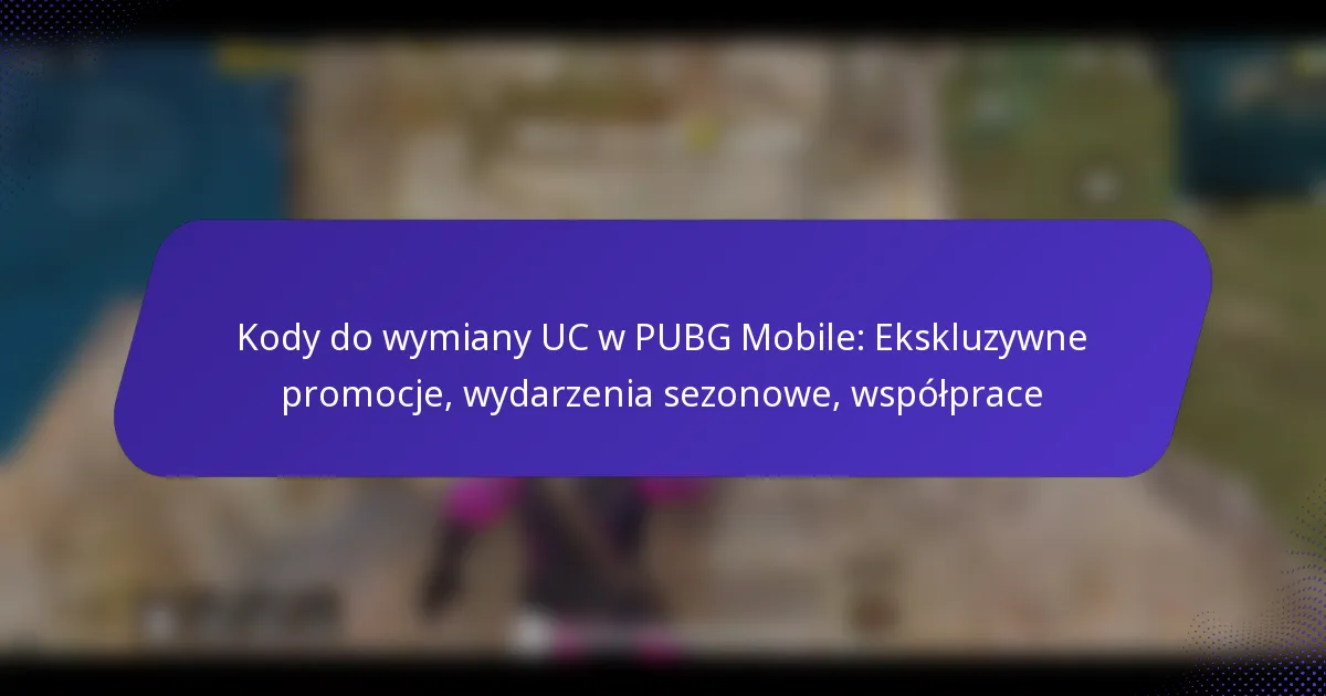 Kody do wymiany UC to alfanumeryczne ciągi, które gracze wpisują w aplikacji PUBG Mobile, aby otrzymać UC. Głównym celem tych kodów jest umożliwienie graczom dostępu do treści premium i funkcji, które wzbogacają rozgrywkę. Dzięki tym kodom gracze mogą zaoszczędzić pieniądze, ciesząc się jednocześnie pełnym zakresem ofert w grze.